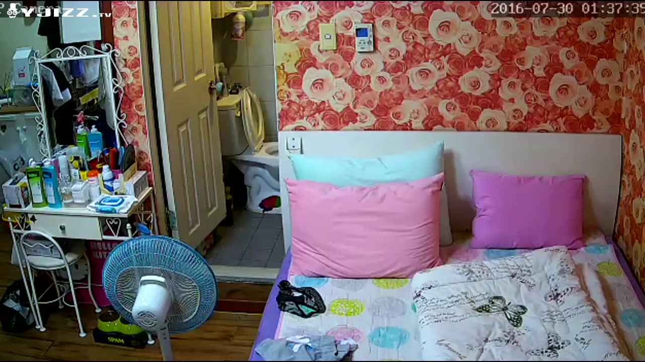 黑客破解家庭摄像头偷拍白领姐姐洗完白白风扇吹身子