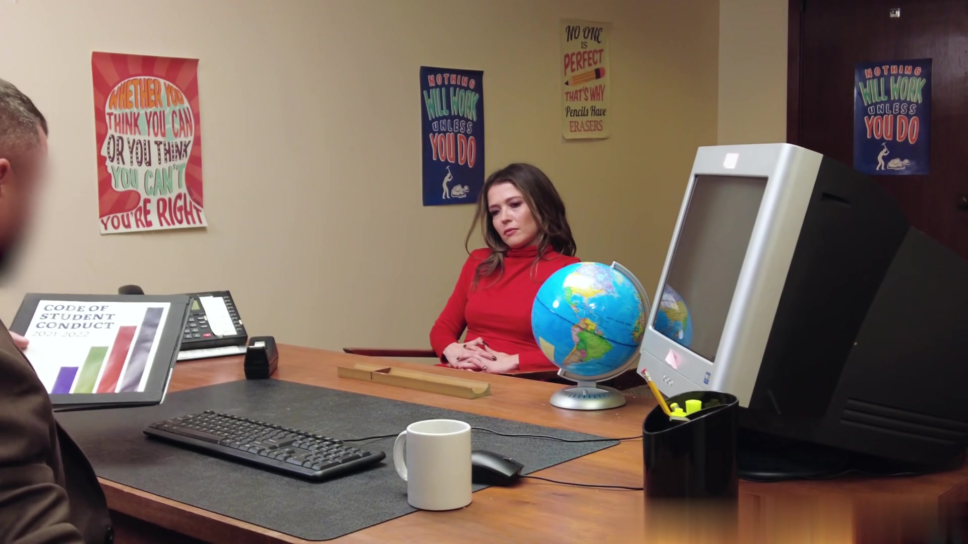 为不让儿子被学校开除在办公室里让校长狠狠操一顿的性感小妇人