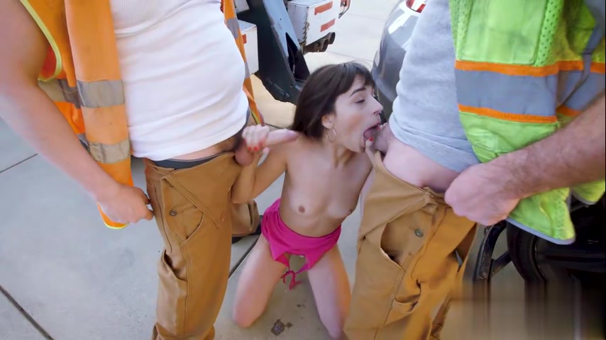 金发巨乳妞搭顺风车被司机载到荒野。