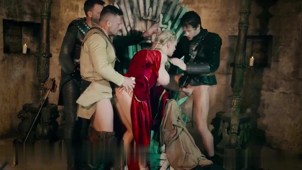 被俘虏的骚逼王后还有最后一个要求,再次在轮奸中被操到高潮。
