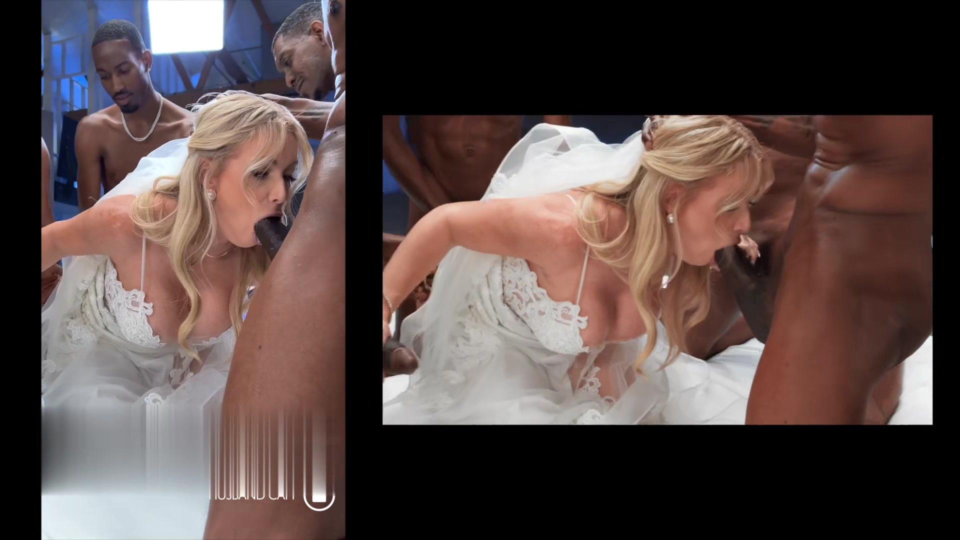 妻子新娘在5位大鸡巴黑人的轮奸中得到快乐,而老公看着就非常满足。