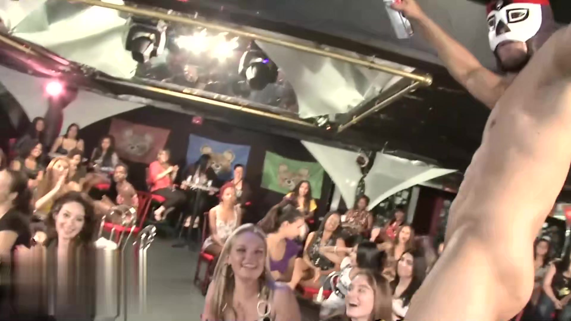 跳舞的脱衣舞娘和性感的淫荡女士等待展示她们的吸吮技巧和内射深度。