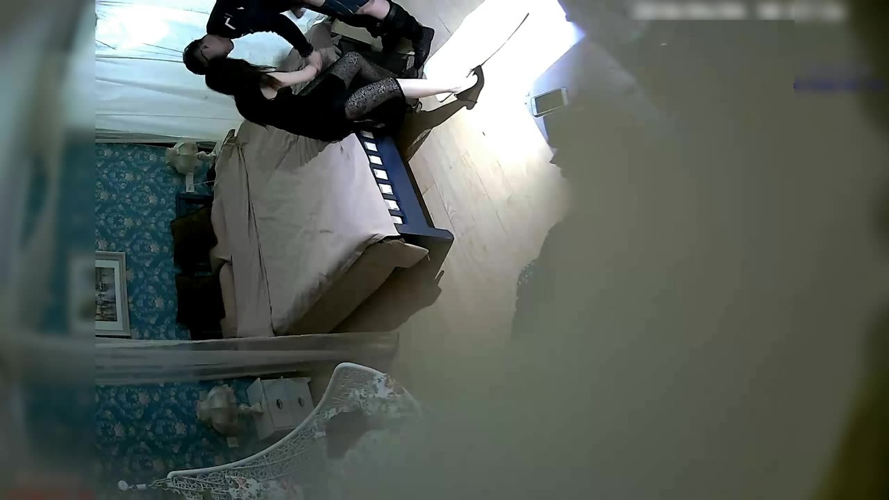 主题店黑色高跟鞋蕾丝连衣裙高雅气质长发美女私会性福眼镜男衣服还没脱就急着吃屌日了2炮美女很激情疯狂