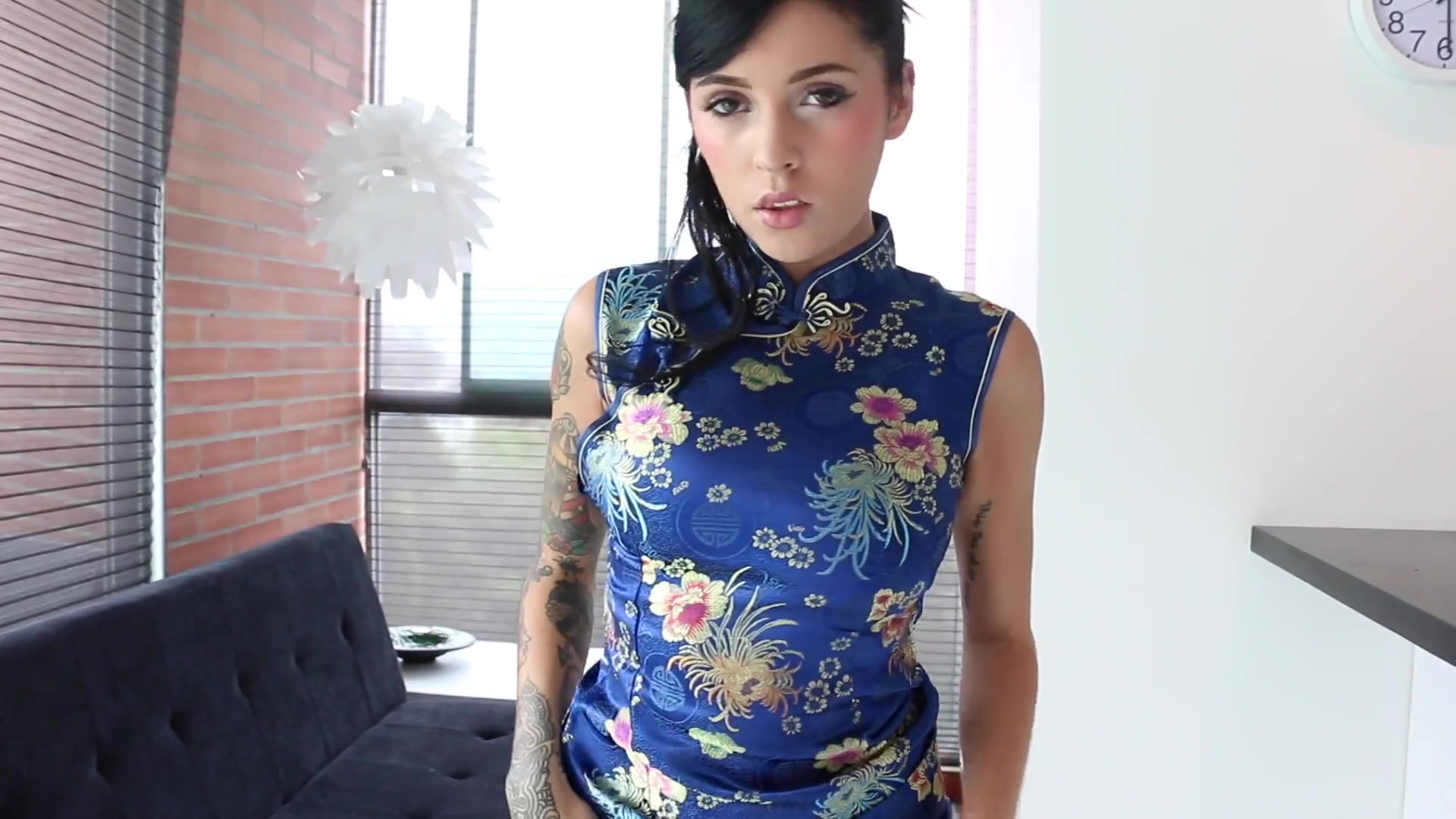 花臂纹身巨乳妹子旗袍诱惑逼逼无毛还挺嫩